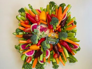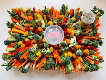 We style our Fresh Vegetable Platter with colourful and highest quality fresh seasonal vegetables and flower. It’s perfectly served with hummus.